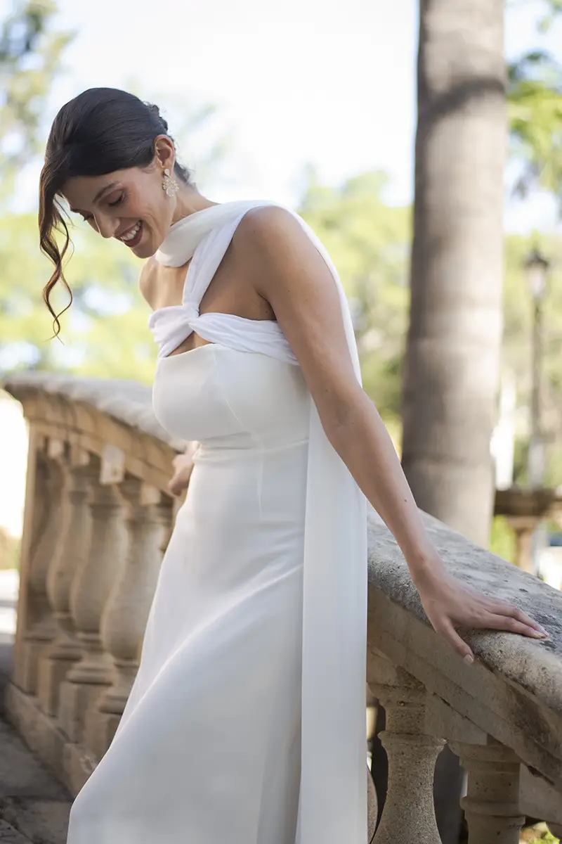 Es un vestido pensado para iluminar, estilizar y acompañar con elegancia cada movimiento, donde la pureza del blanco potencia la sensación de equilibrio y sofisticación.