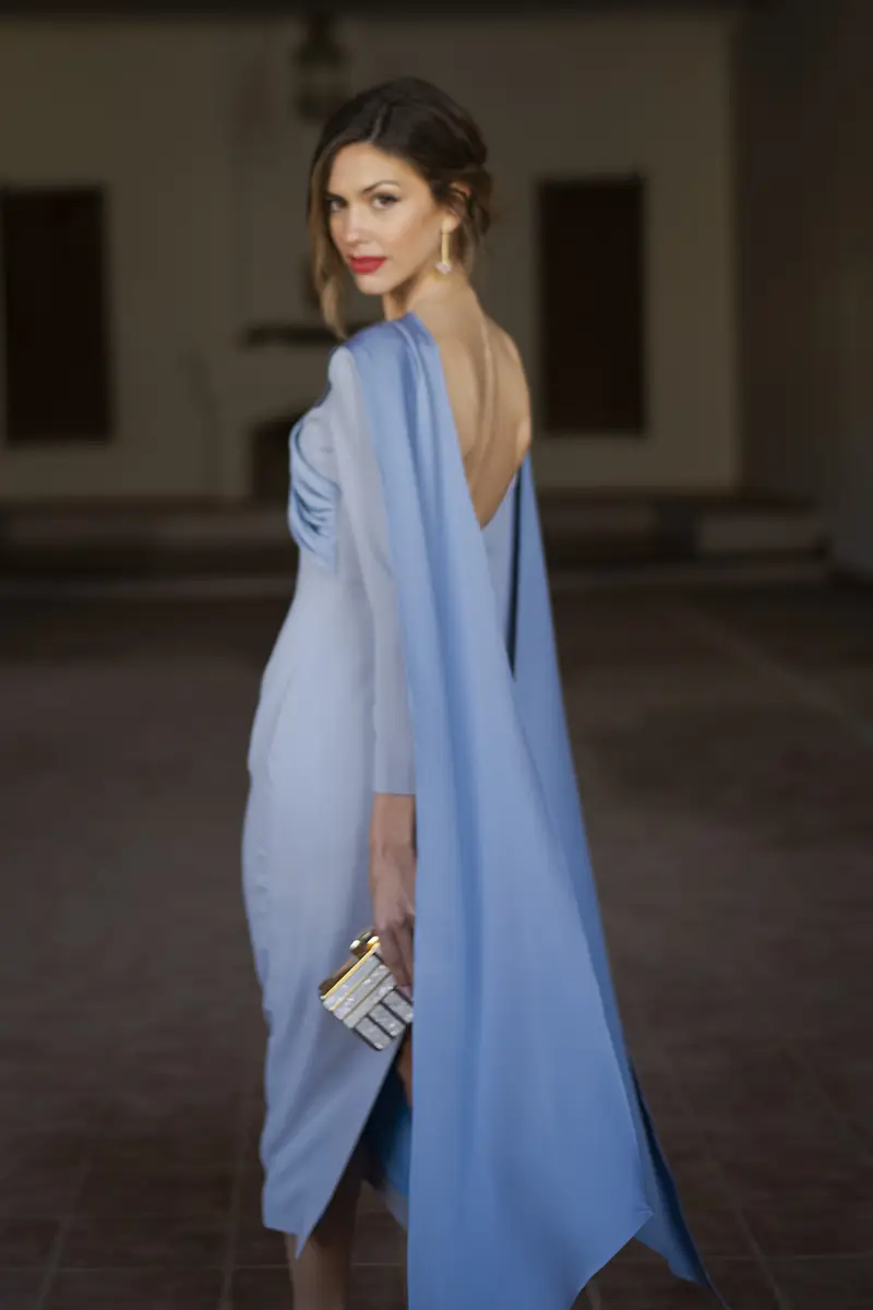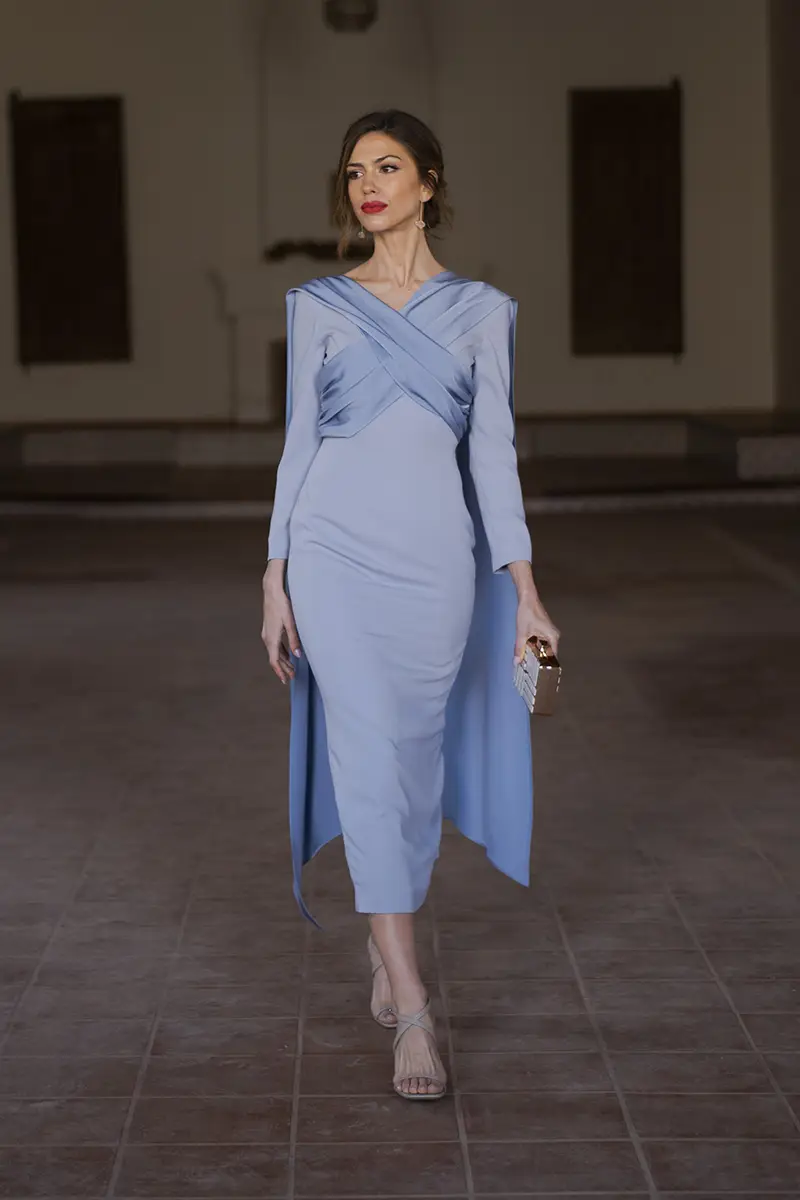 También es una opción ideal para invitadas de boda de entretiempo, que buscan un vestido favorecedor, elegante y con un punto diferencial que se aprecia tanto de frente como al darse la vuelta. Un diseño para mujeres que valoran el buen patronaje, los acabados impecables y las prendas que hablan por sí solas.